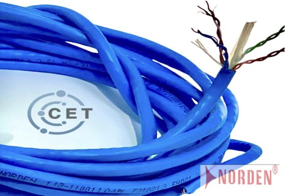 Cáp mạng Cat 6 U/UTP 23 AWG 4 Pair Cable PVC E Series _ 113-40001104BL của Norden là giải pháp lý tưởng cho các hệ thống mạng tốc độ cao, hỗ trợ băng thông lên đến 250MHz và ứng dụng Gigabit Ethernet.